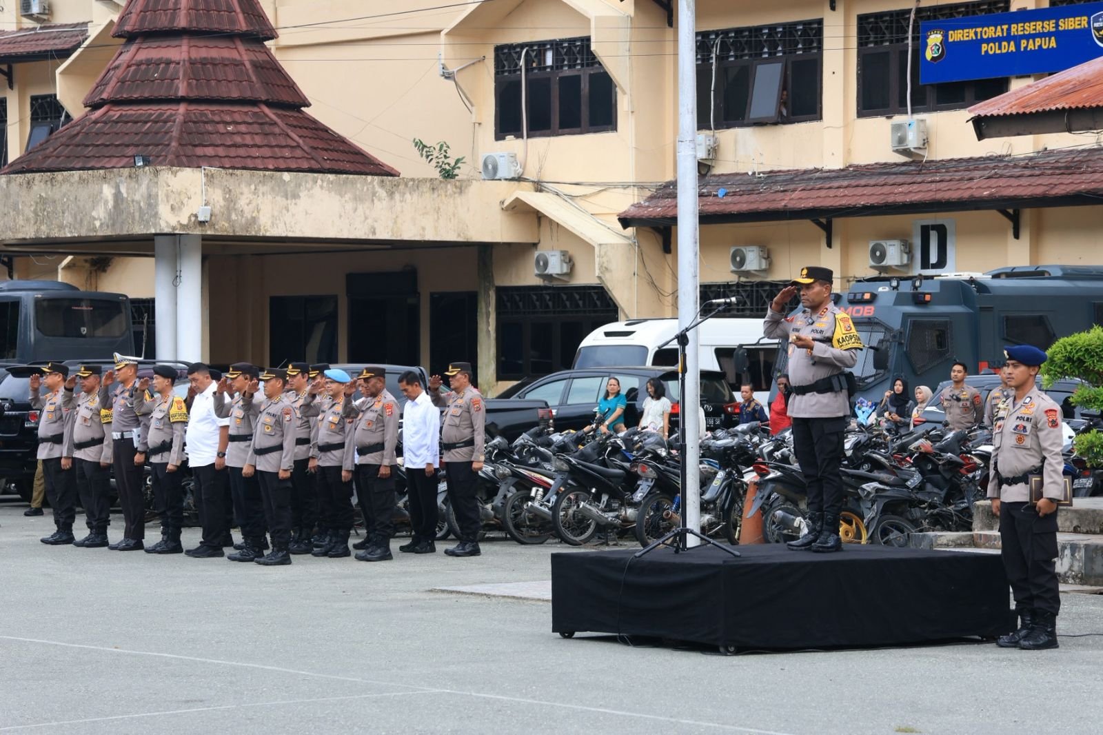 Upacara dipimpin langsung oleh Kapolda Papua Irjen Pol. Patrige R. Renwarin, S.H., M.Si., dan dihadiri Wakapolda Papua Brigjen Pol. Dr. Faizal Ramadhani, S.Sos., S.I.K., M.H., Irwasda Polda Papua Kombes Pol. Jeremias Rontini, S.I.K., M.Si., Ketua Bhayangkari Daerah Papua Ny. Nova Patrige Renwarin, para pejabat utama Polda Papua, pengurus Bhayangkari, serta seluruh personel Polri dan ASN Polda Papua.