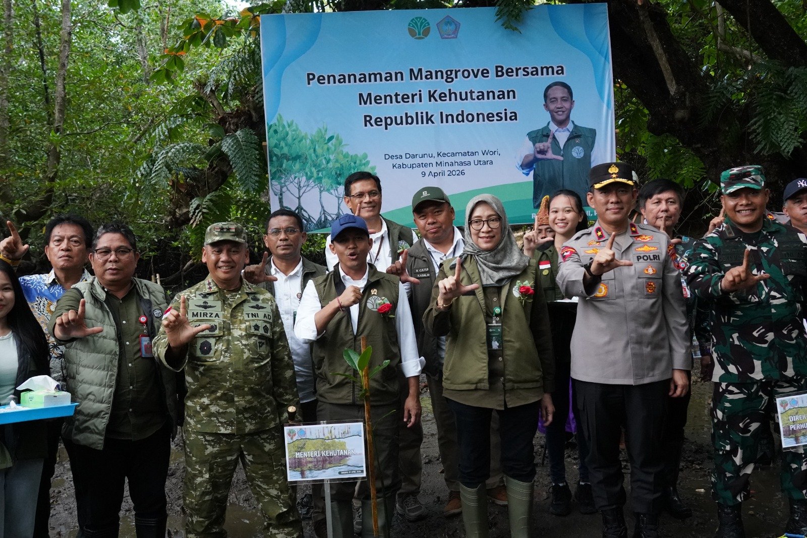 Minahasa Utara – Komandan Kodim 1310/Bitung Letkol Inf Dewa Made DJ, turut mendampingi Pangdam XIII/Merdeka Mayjen TNI Mirza Agus, S.I.P., dalam kegiatan kunjungan kerja Menteri Kehutanan Republik Indonesia, Raja Antoni, Ph.D., yang berlangsung di Mangrove Park LPHD Dariaga Mudae, Desa Darunu, Kecamatan Wori, Kabupaten Minahasa Utara, Kamis (09/04/2026).