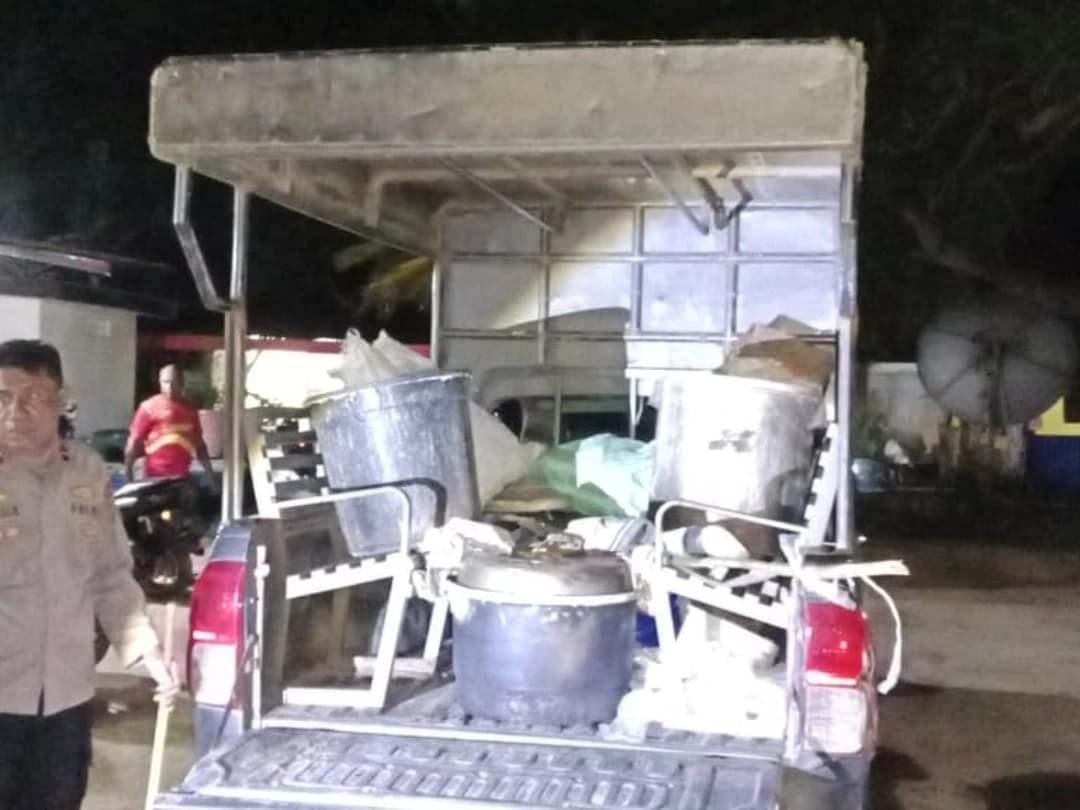 Barang bukti yang diamankan antara lain 1 buah kompor merk HOCK, 1 batang bambu, 2 panci, 1 jerigen berisi sopi, serta 2 ember besar yang digunakan dalam proses produksi miras ilegal tersebut.