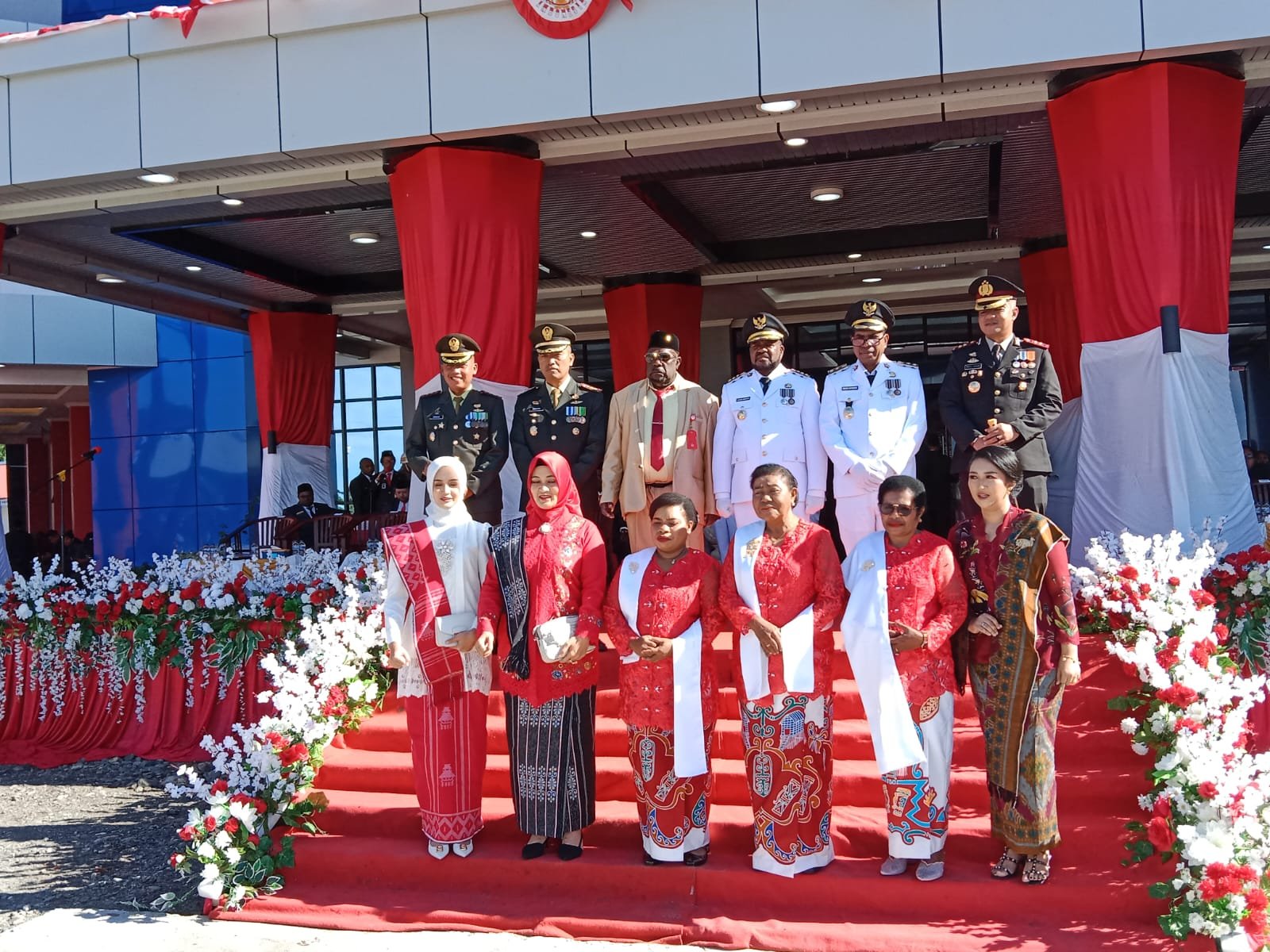 Mansel – Kepala Kepolisian Resor Manokwari Selatan AKBP Marzel Doni, S.I.K., M.H. didampingi Ibu Ketua Bhayangkari Cabang Manokwari Selatan Ny. Marzel Doni menghadiri Upacara Bendera dalam rangka memperingati Hari Kemerdekaan Republik Indonesia ke-80 di Halaman Kantor Bupati yang berlokasi di Bukit Boako Distrik Ransiki Kabupaten Manokwari Selatan. Minggu, (17/8/2025)