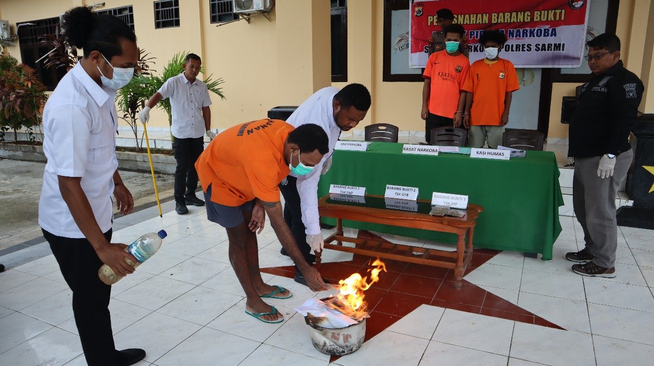 “Pemusnahan barang bukti ini dilakukan agar tidak ada celah bagi pihak mana pun untuk menyalahgunakannya, sekaligus sebagai bentuk transparansi Polres Sarmi dalam setiap penanganan perkara narkotika,” ungkapnya.