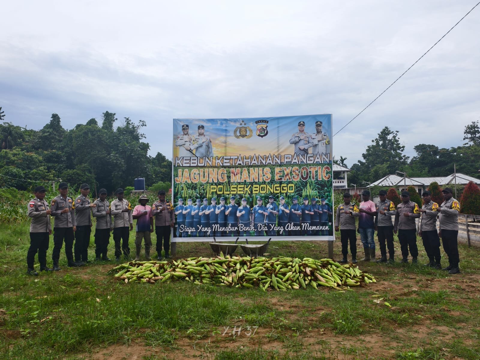 Kapolsek Bonggo mengungkapkan rasa syukur atas hasil panen yang memuaskan dan berharap hal ini dapat memotivasi masyarakat Bonggo Raya untuk ikut mengelola lahan yang belum tergarap menjadi sumber penghasilan.