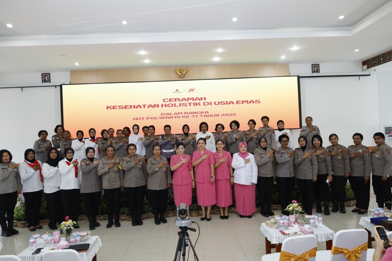 Papua – Dalam rangka memperingati Hari Kesatuan Gerak Bhayangkari (HKGB) ke-73 Tahun 2025 serta HUT Polwan ke-77 Tahun 2025, Bhayangkari Daerah Papua bersama Polwan Polda Papua melaksanakan kegiatan Ceramah Kesehatan Holistik di Usia Emas, pada Kamis (28/8).