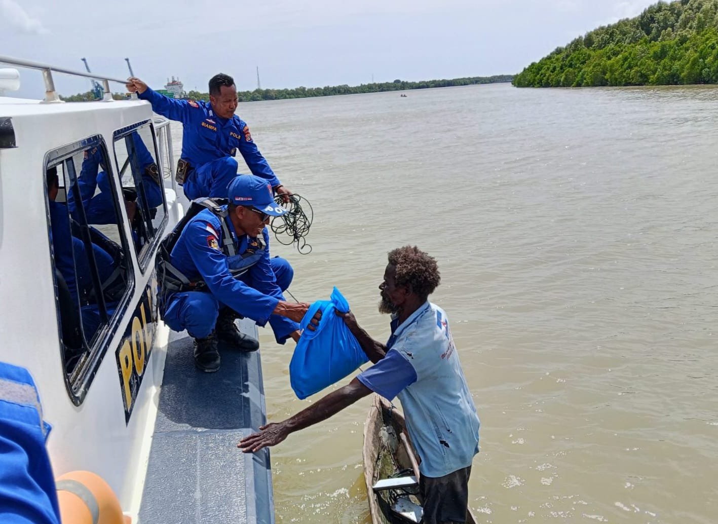 Papua – Satuan Polisi Perairan dan Udara (Sat Polairud) Polres Merauke melaksanakan kegiatan Jumat Berkah pada Jumat (30/01) di perairan Kali Maro, Merauke. Kegiatan ini bertujuan untuk memberikan tali asih serta menyampaikan himbauan kamtibmas kepada masyarakat pesisir yang sedang beraktivitas di sekitar perairan.