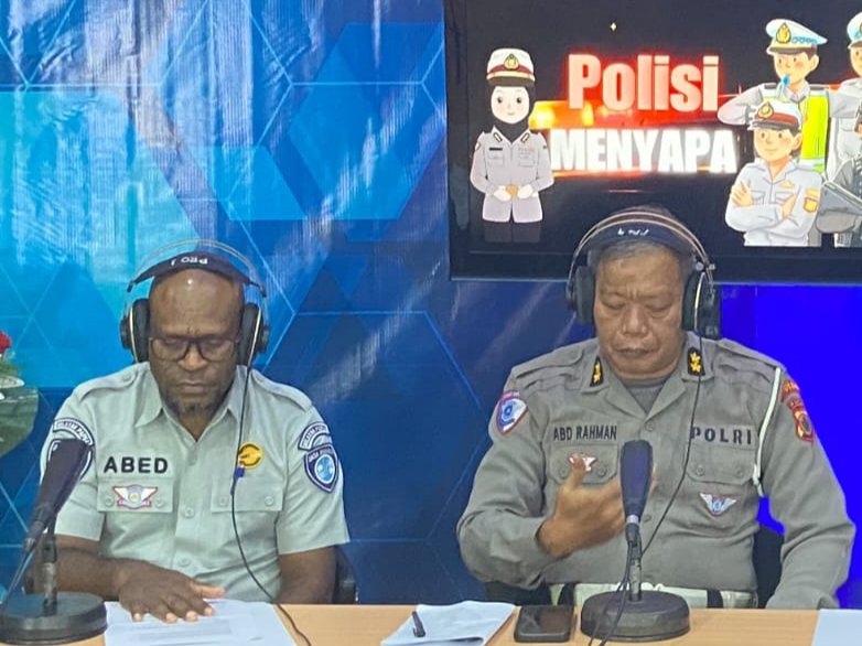 Papua – Dalam rangka meningkatkan kesadaran masyarakat terhadap pentingnya keselamatan berlalu lintas, Polda Papua melalui Bidang Hubungan Masyarakat bekerja sama dengan LPP RRI Jayapura menggelar Dialog Interaktif Polisi Menyapa dengan tema “Tertib Berlalu Lintas, Wujudkan Keselamatan Bersama” bertempat di Studio 3 LPP RRI Jayapura, Kamis (23/10/2025).