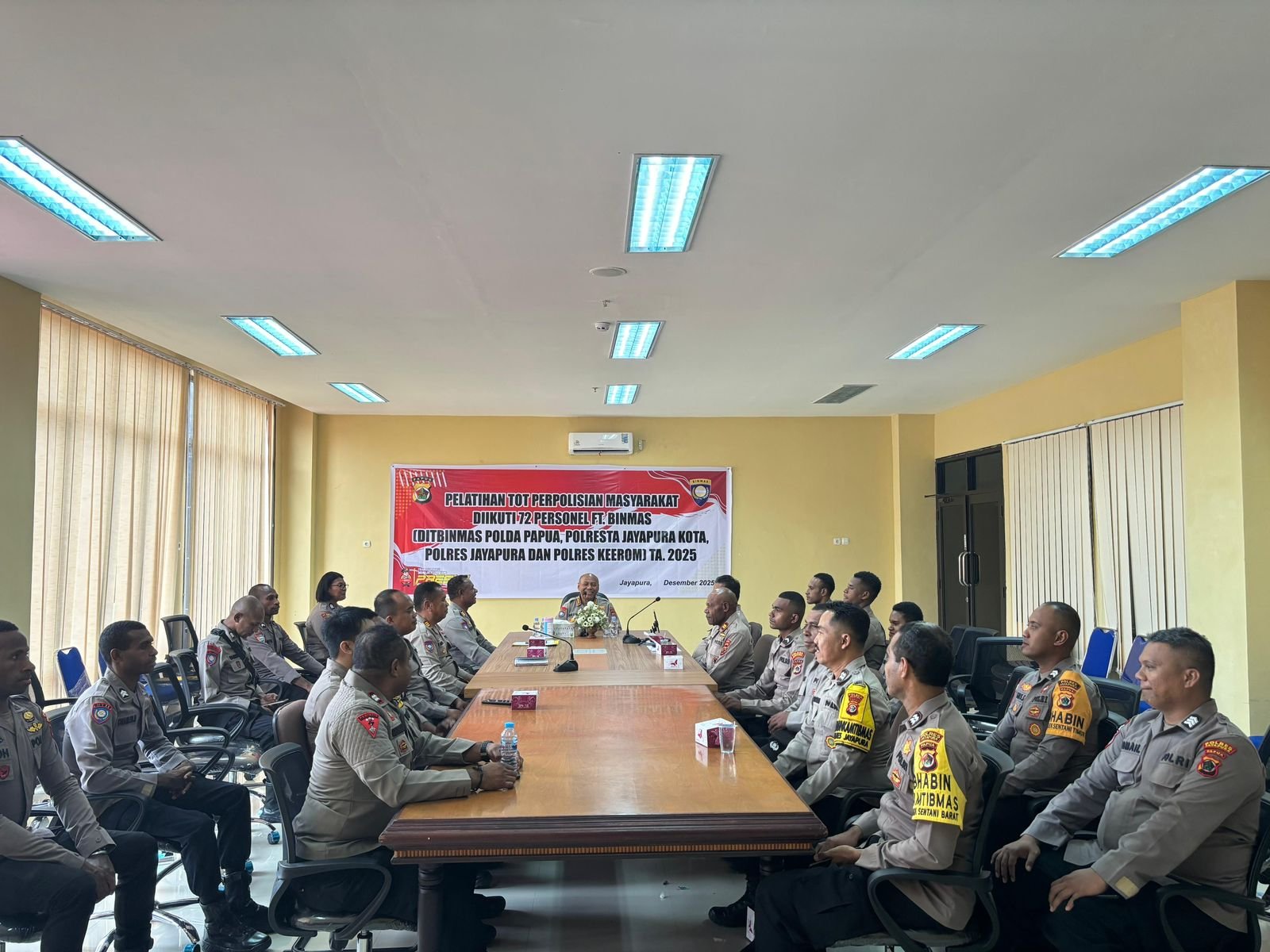 Dir Binmas Polda Papua Kombes Pol Erick Kadir Sully, S.I.K., dalam arahannya menekankan pentingnya penguatan kemampuan personel dalam melaksanakan strategi pemolisian masyarakat atau Polmas, sebagai upaya membangun kemitraan aktif antara Polri dan masyarakat dalam menjaga situasi kamtibmas.