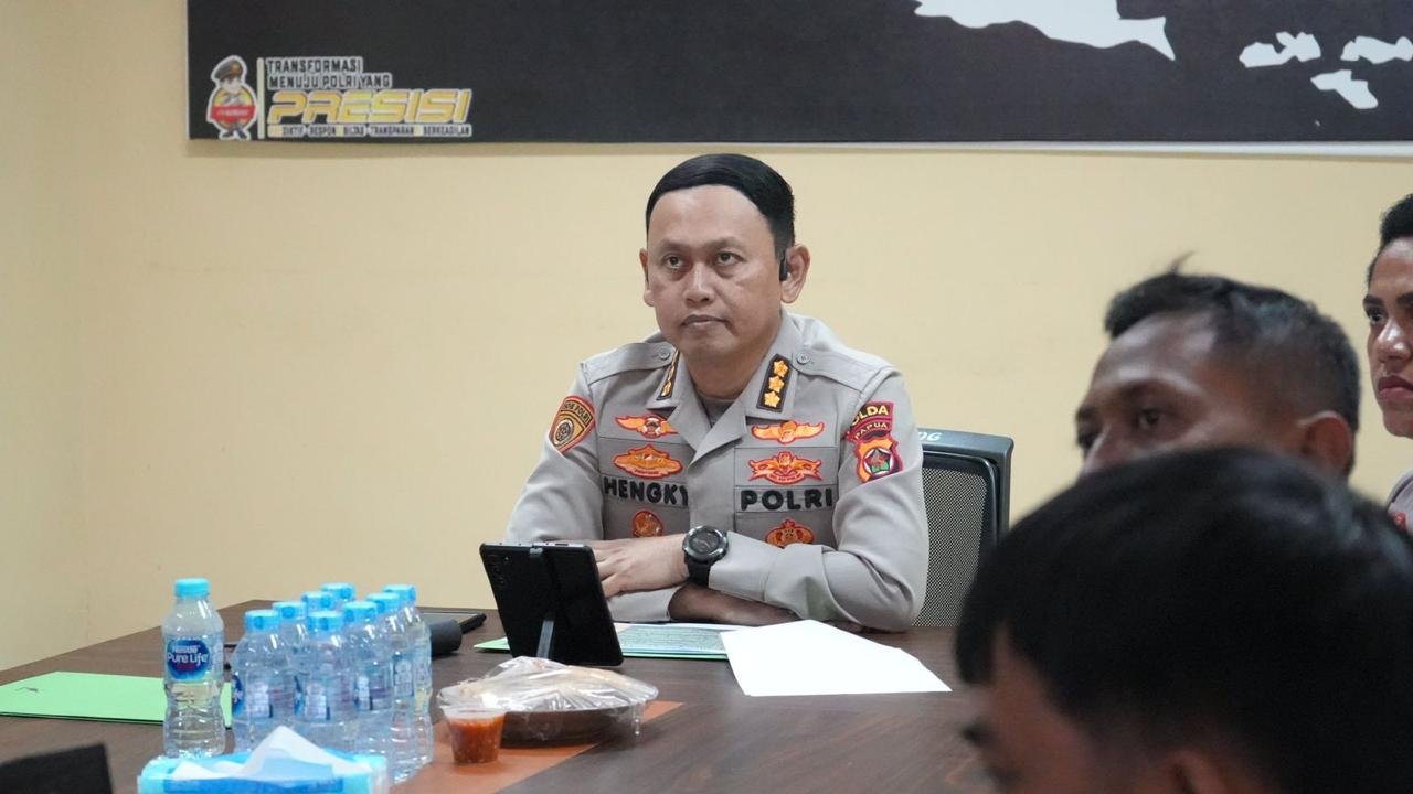 Papua – Kepolisian Daerah Papua mengikuti Rapat Analisa dan Evaluasi (Anev) serta Koordinasi Ketahanan Pangan Tahun 2026 yang dilaksanakan secara virtual melalui Zoom Meeting, bertempat di Ruang Video Conference (Vicon) Biro Logistik Polda Papua, Senin (12/1/2025).