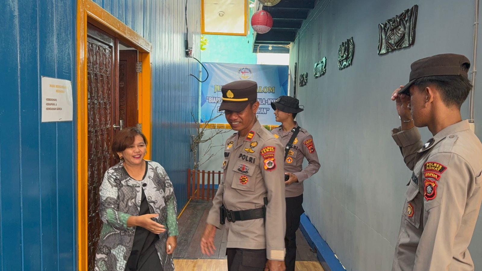 Kapolres Asmat AKBP Wahyu Basuki, S.I.K., melalui Kabag Ops Polres Asmat AKP Okto Adianto Samosir, S.H., menyampaikan bahwa pengamanan dilakukan guna memastikan seluruh rangkaian ibadah berjalan dengan khidmat, aman, dan kondusif.