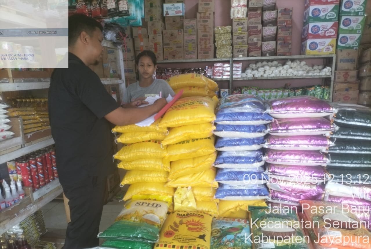 Papua – Tim Indagsi Polres Jayapura yang dipimpin langsung oleh Kasat Reskrim Polres Jayapura AKP Alamsyah Ali, S.H., M.H melaksanakan pemantauan langsung harga beras pada sektor retail modern di Toko Orion Gym, sebagai bagian dari kegiatan rutin monitoring harga bahan pokok di wilayah Kabupaten Jayapura, Minggu (09/11).