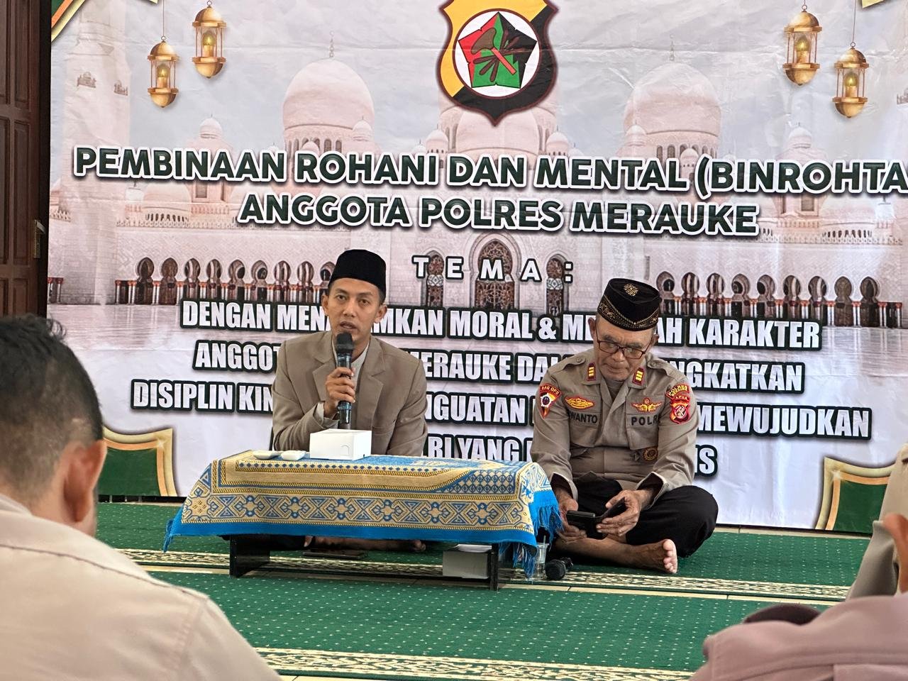 Untuk umat Islam, kegiatan berlangsung di Masjid Al-Hadi dipimpin oleh Ustadz Furqon Abdul Haq dengan tema keteladanan Nabi Muhammad SAW sebagai sosok yang mulia dan panutan kehidupan. Ceramah yang diikuti 70 anggota ini mengajak peserta meneladani akhlak Rasulullah dalam kehidupan sehari-hari serta mendoakan keamanan bangsa, khususnya Kabupaten Merauke agar senantiasa aman dan kondusif.