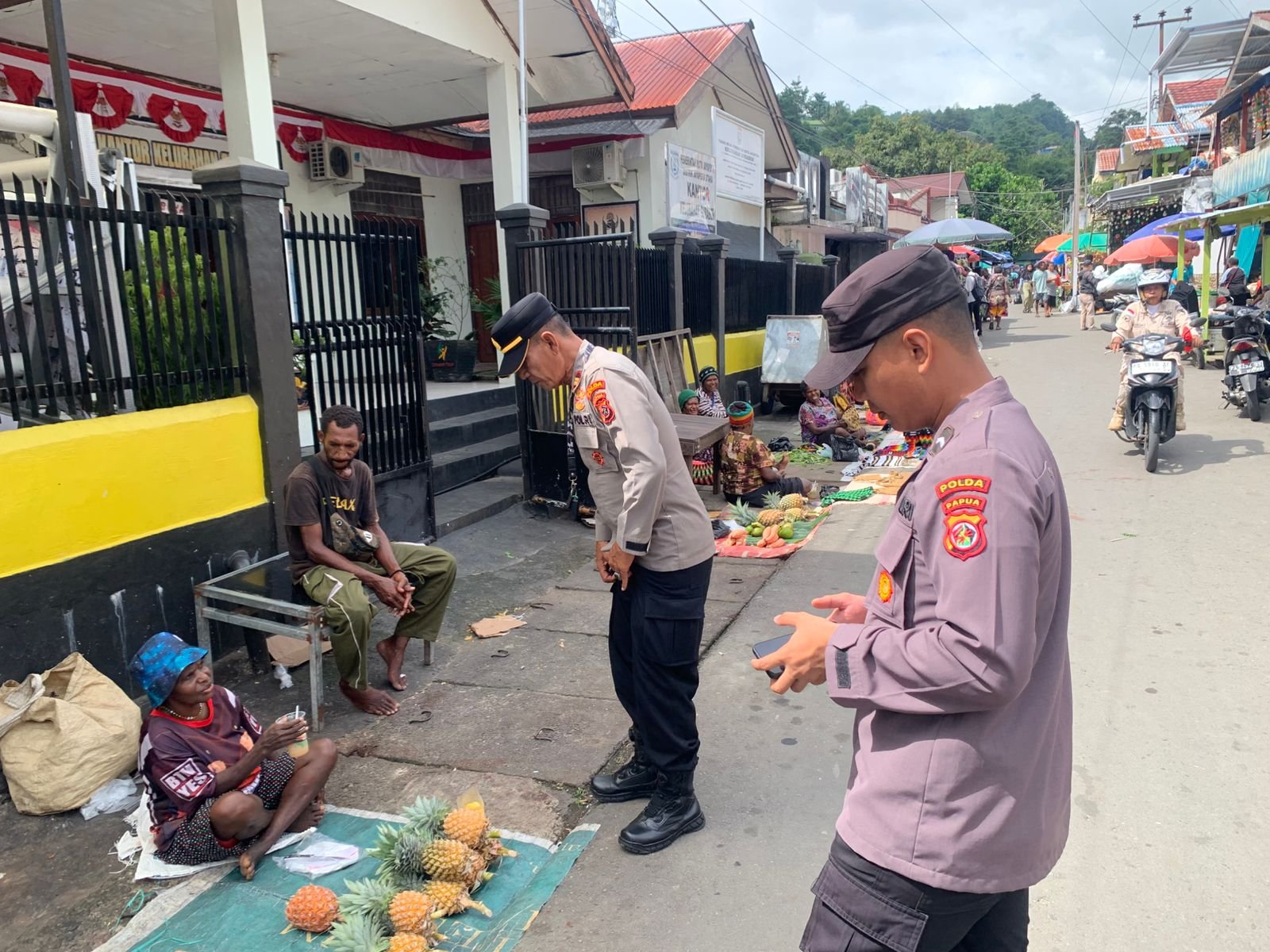 Papua – Dalam rangka menjaga situasi kamtibmas tetap aman dan kondusif selama pelaksanaan Operasi Lilin, personel Operasi Lilin Cartenz melaksanakan kegiatan sambang dan pengamanan dialogis di Pasar Pagi Paldam, Kota Jayapura, Rabu (24/12/25).