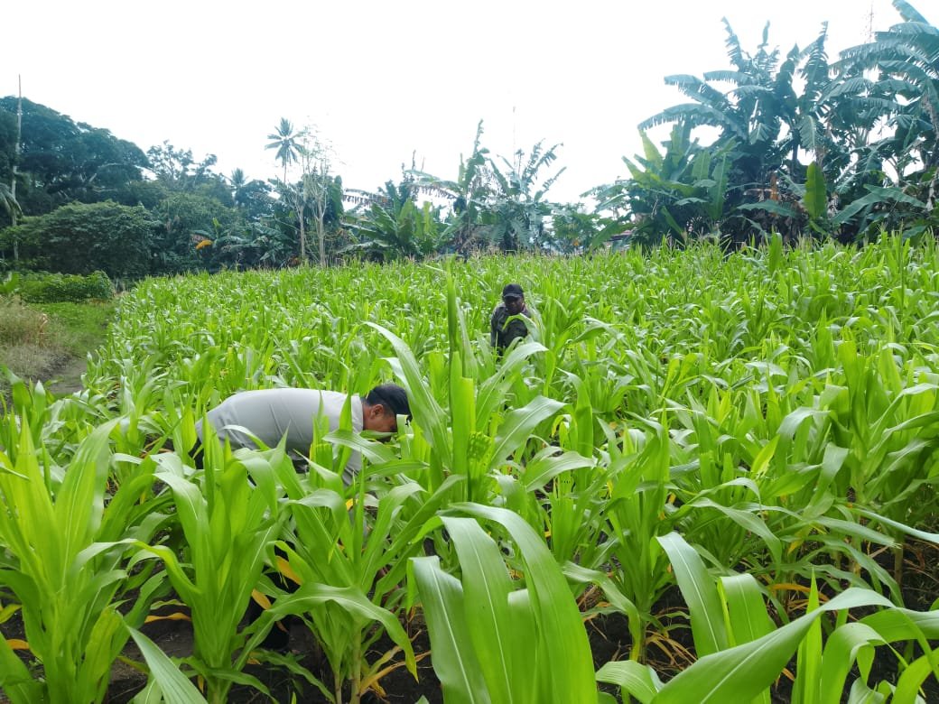 Papua – Personel Polsek Sota melaksanakan kegiatan monitoring sekaligus pengecekan perkembangan tanaman jagung di lahan pertanian Polsek Sota, disertai dengan pembersihan rumput pada area tanaman, Kamis (11/09).