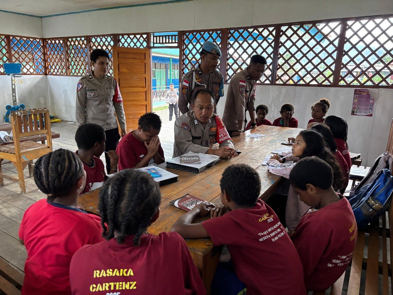 Papua – Program Si-IPAR (Polisi Pi Ajar), bagian dari Operasi Rasaka Cartenz 2025, Mengajar Berhitung Cepat Bagi Anak-anak yang masih duduk di bangku sekolah dasar kelas 4 sampai 6, kegiatan dilaksanakan di Balai Kampung Kabiding Distrik Oksibil, Kabupaten Pegunungan Bintang, Oksibil Selasa (16/09) Sore.