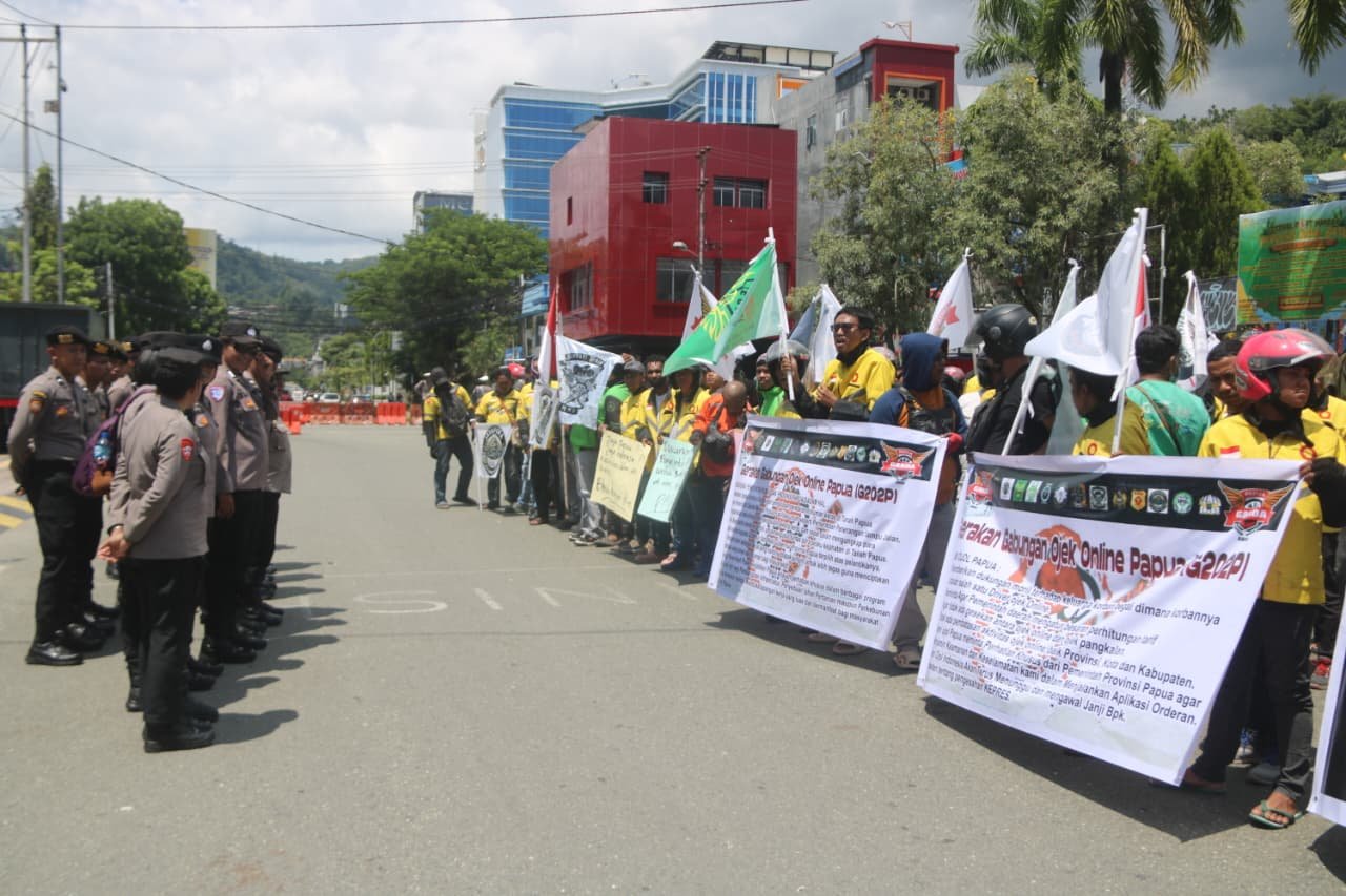 Aksi yang dimulai sekitar pukul 10.00 WIT ini dikoordinatori oleh Dimas Aryesta, Wakil Ketua I Garda Provinsi Papua, dan Andre Bleskadit, Sekretaris Garda Provinsi Papua. Massa aksi berasal dari sejumlah komunitas ojek online, di antaranya GARDA Papua, THC, TESI, MAKO 45, BRS, DENGER, GMC, SDC, BOS, JOC, dan JAPSEL SQUAD, yang datang dari Kota dan Kabupaten Jayapura.