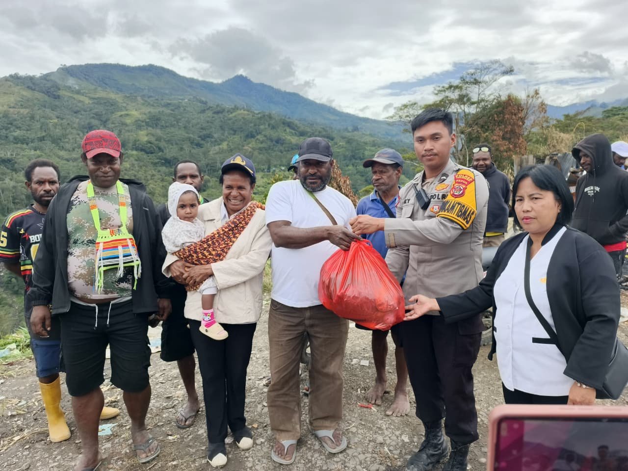 Kasat Binmas Polres Tolikara, Ipda Kasrim, S.E., menyampaikan bahwa kehadiran Polri merupakan wujud kepedulian terhadap masyarakat yang terdampak bencana serta dukungan terhadap pemerintah daerah.
