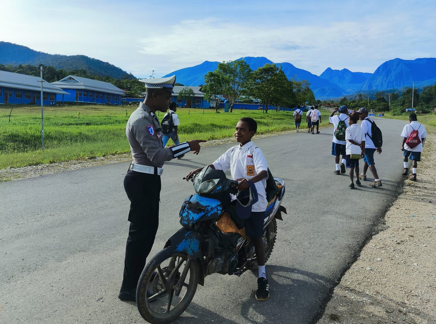 Sat Lantas Polres Mamberamo Tengah Berikan Edukasi Kamseltibcar Lantas bagi Pelajar di Kobakma