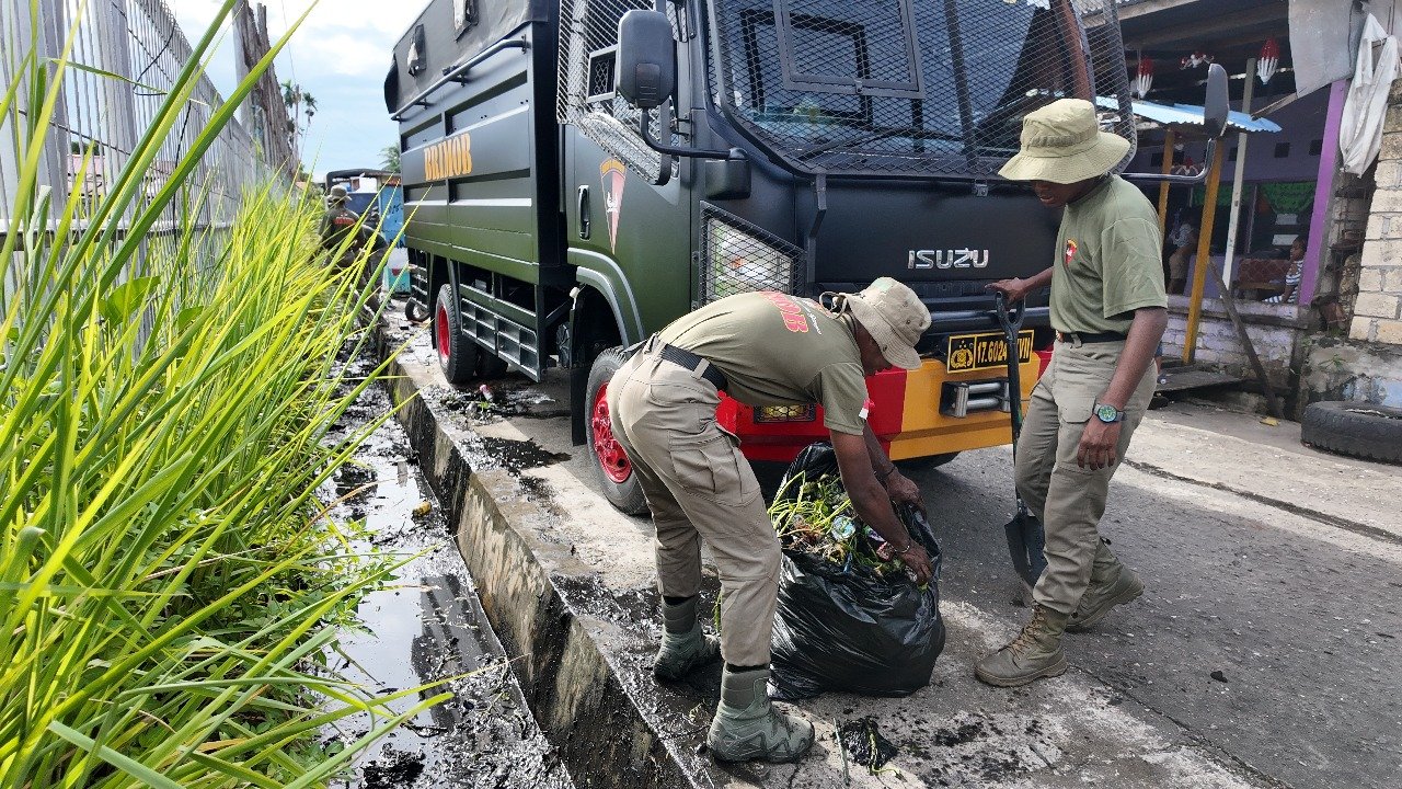 “Kehadiran kita semua menunjukkan kesatuan kita dalam menjaga kebersihan di lingkungan Pasar Hamadi, kompleksnya, dan juga Kota Jayapura… Mari kita laksanakan pembersihan lingkungan ini dari sampah dengan hati yang gembira dan penuh kesadaran. Kegiatan ini memiliki manfaat besar, yaitu melindungi kita dari bahaya banjir dan penyakit wabah,” ujarnya.