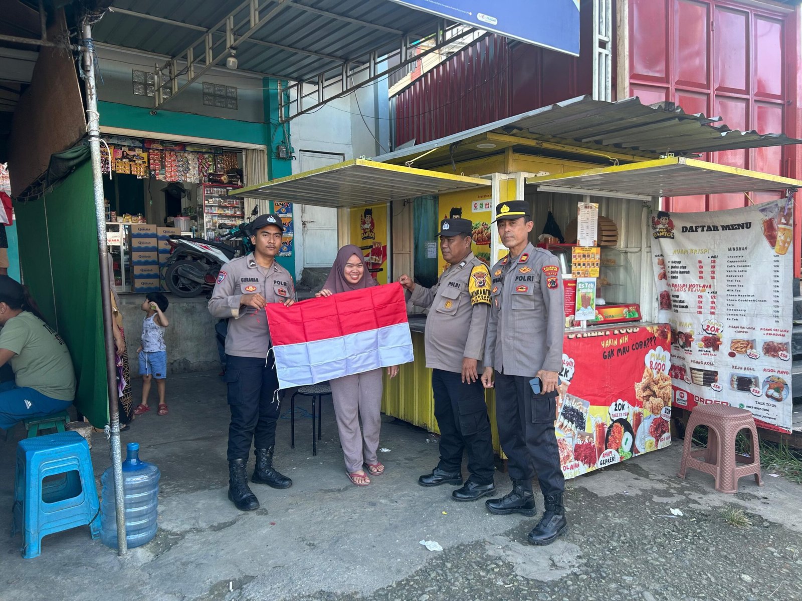 Papua – Dalam rangka menyambut Hari Ulang Tahun ke-80 Kemerdekaan Republik Indonesia, Polsek Kawasan Pelabuhan Laut (KPL) Jayapura menggelar kegiatan pembagian Bendera Merah Putih kepada masyarakat di sekitar kompleks Gajah Putih, Kelurahan Numbay, Distrik Jayapura Selatan, Jumat (15/08/25).