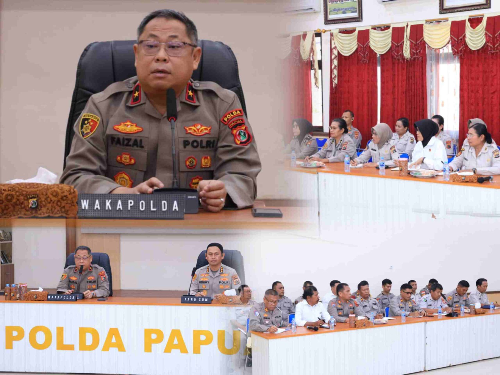 Papua – Wakapolda Papua, Brigjen Pol Dr. Faizal Ramdhani, S.Sos., S.I.K., M.H., memberikan arahan kepada para Kasubag Renmin satker Polda Papua dalam kegiatan yang berlangsung di Aula Rupatama Polda Papua, Senin (15/9/2025). Kegiatan tersebut turut dihadiri oleh Karo SDM Polda Papua, Kombes Pol Hengky Pramudya, S.I.K., M.Si., serta seluruh Kasubag Renmin satker Polda Papua.