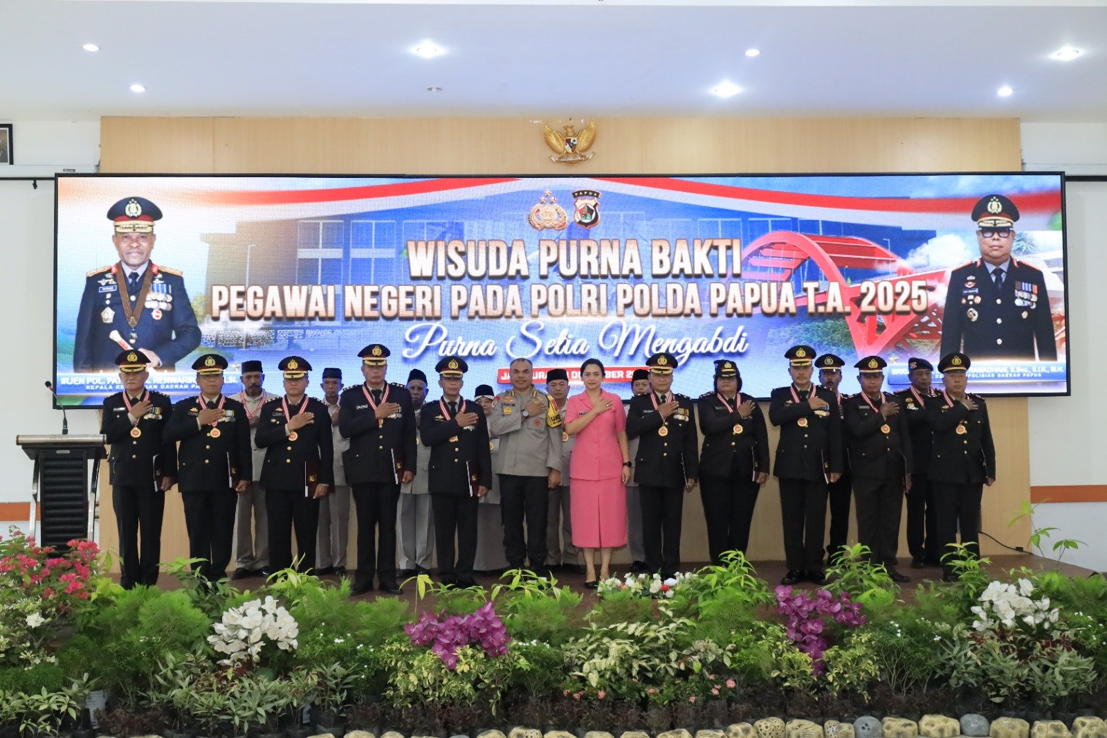 Papua – Polda Papua menggelar kegiatan Wisuda Purnabakti dan Tradisi Pedang Pora bagi anggota Polri yang memasuki masa purna tugas Tahun 2025 sebagai bentuk penghormatan dan apresiasi institusi atas dedikasi serta pengabdian para anggota selama bertugas di Kepolisian Negara Republik Indonesia.
