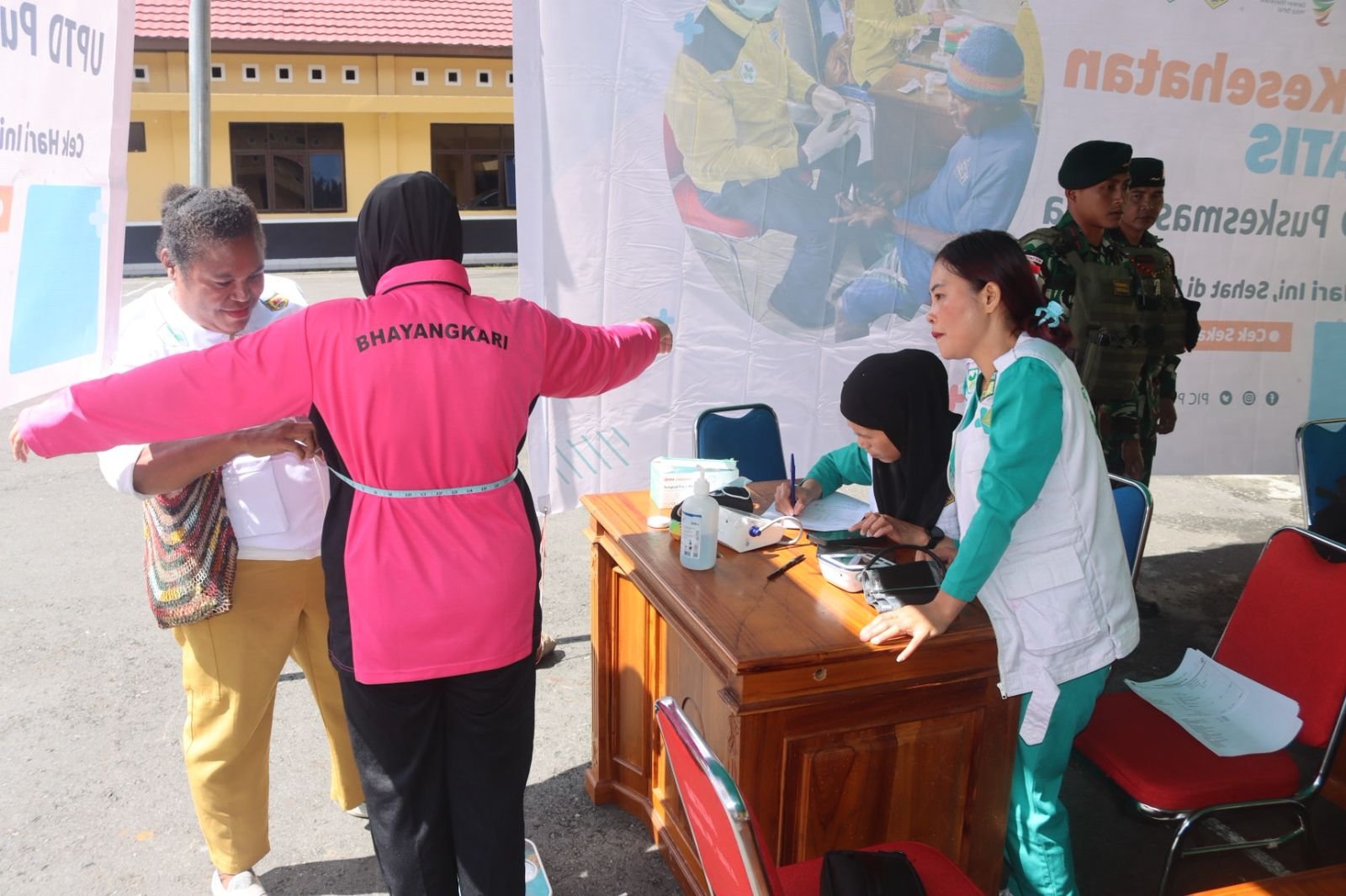 Papua – Dalam rangka menjaga dan memastikan kondisi kesehatan personel tetap prima, Polres Puncak Jaya bersama keluarga besar Bhayangkari mengikuti kegiatan pemeriksaan kesehatan gratis yang dilaksanakan oleh Puskesmas Mulia, bertempat di halaman Mako Polres Puncak Jaya, Sabtu (04/10).