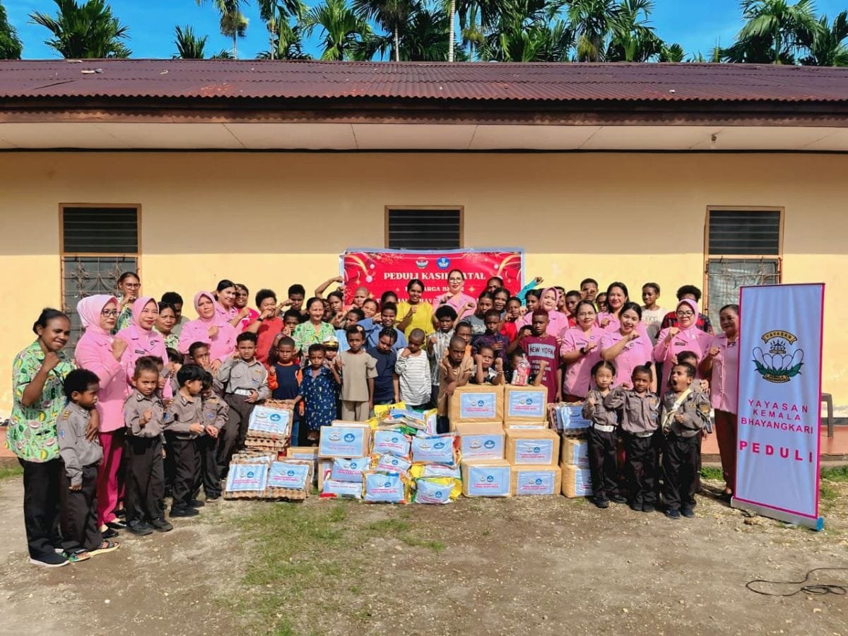 Papua – Yayasan Kemala Bhayangkari Cabang Jayapura Kota bersama siswa-siswi TK Kemala Bhayangkari 01 Base G dan TK Kemala Bhayangkari 03 Hamadi melaksanakan kegiatan kunjungan kasih ke dua panti asuhan dalam rangka menyambut Natal 2025, Sabtu (06/12/2025).